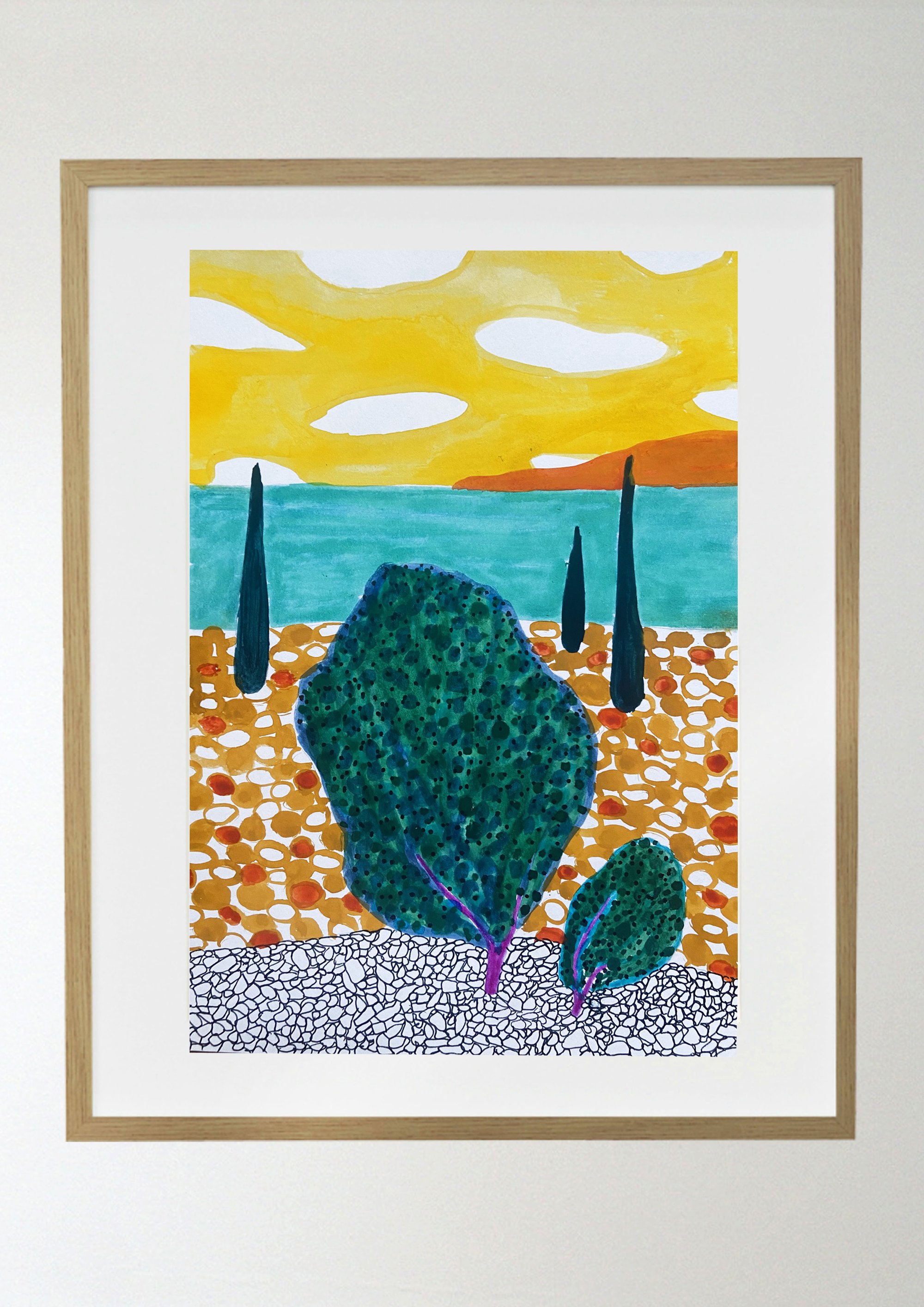Dessin aquarelle et aux feutres, format A5, 14,8 x 21 cm